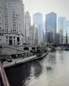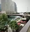 Very nice view of the Chicago canals. Walking path along the river very nice. You will meet joggers and people sipping coffee on the terrace before going to work.