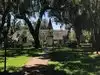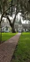 We biked here from our hotel, a 14 mile round trip. Beautiful warm day in February. The actual church did not open until 2pm so we did not go in. We strolled the grounds of the cemetery. The trees there were extraordinary! They appeared to be blooming roses and the moss hanging from them added a picturesque view unlike any I have ever seen. I still don't know what they were. My guess is some type of Crepe Myrtle. There were ancient live oak trees and the Spanish moss was very dramatic. The graves dated back into the 1700's. Thoroughly enjoyed it!