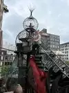 The site was an empty 10 story shoe factory circa 1910 that artist Bob Casilly transformed into an amazing playhouse. He collected architectural elements from St Louis buildings being torn down and used these pieces of the "City" as building materials. Incredible underwater themed mosaics cover the ground floor and earth elements range inside in the basements underneath. Outside the climbing areas and hanging airplane and rooftop ferris wheel represent air. Fire grows from exerting yourself crawling, climbing and laughing.