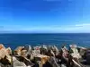 Visited on Monday, 9/19 and walked the entire distance from Memorial Blvd (Easton Beach) to the end at the south end (beach), and back again. Parking on Memorial Blvd was $2/hr with a maximum of 3 hours per vehicle. Parking there can be limited at peak days and hours, so a lot of people took Uber rides or were on tour buses or trolleys. Walking south, the first 1 1/2 miles or so were paved but then there are unpaved sections and more difficult areas walking on top of boulders where you have to be careful with your footing.
