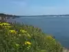 I walked on the Cliff Walk in April 2022 during my visit to Newport, Rhode Island. I parked my car on Webster Avenue. The Cliff Walk area north of Webster Avenue was under repair and you could not walk there. I walked south on Cliff Walk. I passed a beautiful area with yellow flowers. The view of the rocks and the ocean was great. Further on was a Ukrainian flag. Past the Ukrainian flag was The Breakers. Once I passed by The Breakers there was a gazebo. I went around a bend and a little further it was no longer paved with a sidewalk but all rocks. In the distance I could see Marble House and the Chinese Tea House. I decided not to go on the rocks and turned around. Maybe I walked 1.25 miles each way for a total of 2.5 miles. With the repairs and unpaved sections, it is not possible now to walk the entire 3.5 miles. But even with a truncated walk the Cliff Walk is a "must do" in Newport.