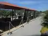 It's a big facility but since this was not a tour, we were only shown the tasting room, which is big (maybe 30' square), high-ceilinged, bar along two sides, frankly I found it a little cold. Out front there is a nice garden area, display of different grapevine varieties and an outhouse.