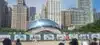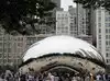 Cloud Gate (The Bean) is a feature sculpture at Millennium Park. It is the work of artist Anish Kappor (2004-06) and is the shape of moving liquid mercury with a perfect reflective surface, allowing visitors to walk around and even under the sculpture, seeing themselves as well as the park and parts of the Chicago Skyline in the background.