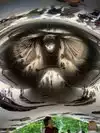 The design was inspired by liquid mercury and you actually walk right up and under it. In fact, the lower 6 feet are windexed twice a day and the entire sculpture is cleaned twice a year with 40 gallons of Tide.