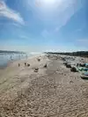 Had a great day at the beach and lunch at the restaurant on the pier. Great beach vibes, soft sand even in the water. Bring your own chairs and umbrella as the do gouge for theirs... and parking is rediculous at $30. However, we enjoyed every minute. The food at the restaurant was amazing!!! The salads are unbelievable as well as the seafood chowder and sandwhiches....great fries as well. Drinks were cold and delicious!! Highly recommend if want a day at the beach.....but don't expect too much in way if shopping....as not many places.....