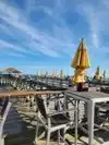 Beautiful view, awesome place to grab a bite or a cold drink. Lots of chairs and umbrellas to rent. Beach is awesome, lots of waves. We had a great day!!!