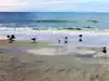 The sand bar here goes out with a slight decline for a great distance - kids were excited to be standing easily far out. Sand is clean/soft. Great beach day!