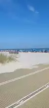 Great Beach ! Sugary sand; refreshing water; lifeguards; chairs and umbrellas for rent and showers; footbaths; changing rooms and even swings in covered areas. The undertow can be a bit intense but children shouldn't be swimming unattended anyway. Free Parking is a breeze; at least in early September. You couldn't ask for more.