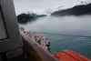 As we sailed closer to the glaciers (which we were told were named after universities - male names on one side of the Fjord and female names on the opposite side), the weather was overcast and misty. First glimpses were from the dining room, but we rushed through dinner to get on deck and enjoy the spectacular scenery. There are snow covered mountains along the Fjord and glaciers galore. Harvard Glacier is very impressive. At one point we had a view of 5 or 6 lined up in one picture. An absolute delight and so glad we were able to experience the views.
