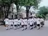 The fife and drums came down the street at 12:30. We didn't have time to eat lunch, though a quick deli/sandwich shop was recommended to us, and instead found Baskin Robbins for a delicious treat.