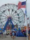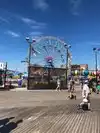 Going to Coney Island is like going to the beach in New York, nothing more, nothing less. Allow 45 minutes to get there by metro. On site the cliché loses a little of its luster, it is in fact a funfair which is all that is more banal, friendly but a bit out of date, dated in fact... The prices are high, especially for the food, not or few places to sit, little shade, it's a bit disappointing. The beach is huge, we went there to put our feet in the water (very cold despite the heat), be careful of the shards of glass. There are nice pontoons where people fish, it's really nice even if while fishing they listen to loud music!!^^ In short, the whole thing leaves a taste of disappointment all the same .