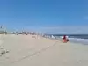 the beach is amazing, long and wide although full of garbage and glass. the public toilets stink at a distance, so avoid them. The boardwalk is nice, but same trees or umbrellas would be nice, as there is no shade at all and even in May it was too hot.