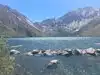 Visited today and canoed on the beautiful lake backed by stunning high mountains ... very scenic and a recommended place to visit if staying nearby. The walk around the lake is an easy 3 miles.