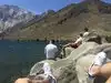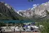 Parking area right by lakeside. Small marina at one side of the lake. we sat down and soaked it all in. There is a path all around the lake from where you can see the place at different angles. Very icy cold water.
