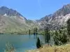 Located just south of Mammoth Mountain off 395 you will find the road to Convict Lake. It's a beautiful lake and not a ton of people there if you get there early.
