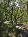 This is a tricky campground to review because it has a few campsites that are spectacular, as good as it gets (5 stars), and a few that are horrendous (1 star). There are a few campsites that are right on the creek so your picnic, cooking, and tent area are completely shaded in greenery with a lovely mist and sounds from the creek. Feels 10 to 15 degrees cooler in these little oasis sites. Some sites are away from the creek and your whole site is exposed to the brutal, relentless desert sun from sunup to sundown, so if you have one of these sites, plan on rising early and not returning to your site until after 7pm. The bathrooms could use upgrading. The flush toilets available used to be adequate 20 years ago when this campground was relatively empty. These days, with it being full to capacity, the bathrooms can get overused and lines can actually form. There are not many water spigots around either. If you cannot get a Creekside campsite, I'd look elsewhere.