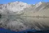 Convict Lake is a beautiful clear mountain lake surrounded colorful granite cliffs on three sides. If you happen to be there on a very calm day you can get perfect reflection pictures of the lake and cliffs.