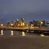 The water is warmer near the ferry center. And this is also where you have many restaurants and shops.