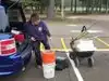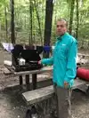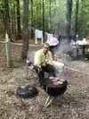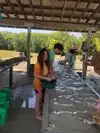 Checked in. Got our gear. And started our ‘hunt’ at the far side of the field. As it was already about 90-degrees at 9 am my son said we should go to the Washing Tables under the pavilion. Smart move as it was much cooler. But I now needed to get more sarucas. So off to the truck to get my wallet and rent gear.