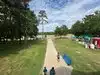 The handicap RV site has level drive, walks, tent pad and sidewalk to the bath house.