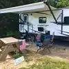 This is probably the nicest camp where we have ever stayed. The scenery is dense woods with plenty of room between the RV spaces. Electric, water and sewer worked just as it should. The place is remarkably clean and well attended. The shower house was spotless and worked like a champ. Nice and quiet at night. We enjoyed walking the trails with our dog. If there is anything not positive to say about it is the camp hosts need to keep their own dogs on leashes just like everyone else. No dog is completely predictable. Rules is rules even if you are the "host". If we lived closer we would probably be there frequently.