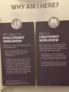 There are literally plaques everywhere that side-by-side compare the evolution theory to the creation theory.