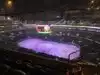 nice hockey party out front, with the fake snow, went to the game, food was super overpriced and not good