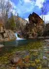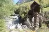 A longtime subject of postcards and calendar covers, the Crystal Mill may the consummate picture of Colorado's rustic past. Also known as the Sheep Mountain Powerhouse or Lost Horse Mill, the photogenic building was constructed in 1893 by promoters of the Sheep Mountain Mining Company. Its waterwheel on the Crystal River generated compressed air that miners used to power silver ore extraction machinery. In the late 19th century, the nearby town of Crystal had an average population of 500. But after the Sheep Mountain Mine closed in 1917 the mine fell into disrepair and fewer than 10 people remained. Today, part-time residents help maintain the mill, a jewel on the National Register of Historic Places as of 1985. They use Crystal's cabins as base camps for touring the spectacular outdoor recreational opportunities of the Elk Range. But mapping a trip to Crystal requires care. It is located in the Elk Mountains along a four-wheel-drive road, Gunnison County Road 3, six miles east of Marble and 20 miles northwest of Crested Butte. Crystal, also known as Crystal City, was established in 1880 after prospectors discovered promising deposits of silver near the confluence of the North Fork and South Fork of the Crystal River. At its height in the mid-1880s, Crystal had over 500 residents, a post office, a newspaper, a pool hall, a popular and exclusive men's club called the Crystal Club, a barber shop, saloons and hotels. Several mines near Crystal proved productive, the largest being the Black Queen, Lead King and Sheep Mountain Tunnel. However, the remoteness of Crystal hindered its success. The transport of ore to the depots in Crested Butte and Carbondale via Marble and the resupply of basic necessities and mail into Crystal were a challenge in the snow-free months and difficult to impossible during the winter. By 1889, Crystal was in decline. The silver panic of 1893 spelled the camp's doom. Most of the mines closed and the population dwindled. To survive, the owners of the Sheep Mountain Tunnel & Mining Company constructed the Crystal Mill to increase efficiency by using the slow of the Crystal River to power an air compressor, which was piped to the mines to run pneumatic drills. But even this innovation wasn't enough to save the mining operations. By 1915, the population was eight. By 1917, the mines were closed. So was Crystal Mill. And the town was largely vacated. Today, Crystal is vacated in the winter but there are a few summer residents. It is best known for for one of the most photographed historic sites in Colorado, the Crystal Mill. Visitors indulge in photography, hiking, peak bagging, mountain biking, fly fishing, hunting (deer and elk) and four-wheel-drive and off-highway vehicle touring.