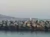 We walked along a path high above the cliff with million dollar homes and a never finished resort's arch. Then down to ocean along a breakwater path and touched mussels on rocks.
