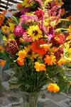 So many fruit and vegetable booths, you'll have a hard time deciding who has the freshest veggies. Don't hesitate - I didn't find any of them to be lacking. Flowers everywhere. Sample some cheeses, spreads and baked goods. You won't find any jewelry booths at this market.