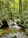 This area of the National Park is absolutely beautiful. There is a nice large parking lot for hikers across from the campground entrance. Really nice bathrooms in the parking area. Several hike options, take Deep Creek trail to Tom Branch and Indian Creek falls, very wide trails, more like gravel road, you can ride a bike if you choose. If you want more of a hike, go left at the sign for Indian Creek and go around and you'll hit the falls on the way back. Want a shorter hike, go right before the bridge and the falls are right there. River runs along the trail below, so pretty. A must do.