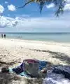 This is a very nice beach with trees near the water. You can sit at picnic tables or on the beach. If you go early you can often see dolphins and rays, which come pretty close to shore sometimes.
