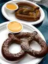 T-Rex Cafe (maybe it was the T-Rex Grab & Go I don't know?) - pretzel and cheese was not the best but at least they had one pretzel that wasn't salt covered! Unsure of selection of food other than that and pizza, (we were trying to get something before Planetarium show).
