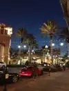 Super place to spend the evening browsing all the different shops and stores. Very safe friendly atmosphere. Music playing, water fountains, candy and ice cream shops! Palm trees lit up everywhere very pretty!