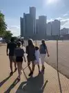 Quick one hour walk along downtown Detroit and the river. Fairly new, good for calm walk with family. View across Canada