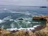If you're staying in the area, a lot of hotels have a tide chart, because so many activities are around the tide pools and the ocean. Pick one up and go visit the Devil's Punchbowl at high tide. We stopped there on our way up the coast and it was low tide so the action of waves exploding against the rocks was not as spectacular as it might have been. Still it was a very interesting place to visit with views of the beautiful coast, wildlife and a nice walk along the bluff overlooking the surfers along the shore and whales feeding in and around the kelp beds near shore.