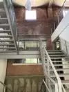 The building has been converted from an old Nabisco factory and in some places the stark walls of the factory have been preserved.