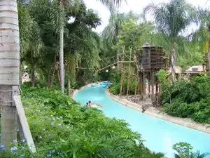 Disney has two great water parks, but our preference is Typhoon Lagoon. It is a water park with excellent individual thrill rides and coasters - water shoves you round the slides in an inflatable - and many family type rides also on inflatables. There's also the lazy river which is relaxing under you drift under a water fall !! The wave pool erupts every so often but watch as it has a fair bit of force. The long high slides are great fun too but you do hurtle down at a fair speed. Then there's the shark reef to swim through - the biggest shock is the temperature of the water !! From the last time we visited they appear to have turned some of the previously public areas are now reserved areas for hiring cabanas.