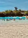 The weather was HOT with very little shade ( unless you wanted to buy or rent it !!. The wave machine was building 7-8ā waves which made it very hard of a small child or our wheelchair bound friend who we managed to get into the 18ā shallows and was promptly washed away by a wave !