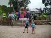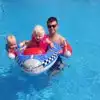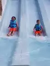 Kids play slides, lazy river, wave machine and raft rides