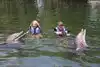 Enjoyable experience with the dolphins and their trainers No actual swimming but you were actually able to pet the dolphins They were very entertaining and the trainers very informative So interesting