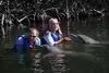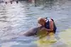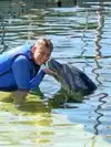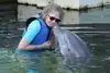 My sister has Multiple sclerosis but it has always been her dream to swim with the dolphins. She finally made it through Dolphin Plus. We were lowered in the water and Sam "our" dolphin interacted with us. Including a kiss for each of us. It was a wonderful experience.