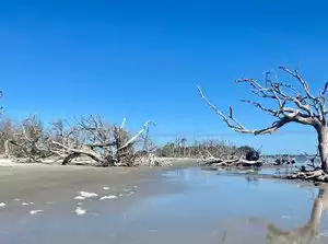 Interesting beach with numerous gnarled petrified trees. You won't see anything like this on most beaches. Good place for shells. Don't miss this beach on Jekyll Island.