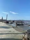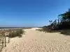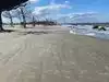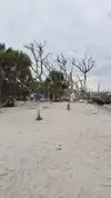 Very nice different kind of beach to visit. Unique strand with lots of old trees and wood in the sand. It’s located near the end of the island so kind of out of the way so there was plenty of parking available when I went. Some kids playing in the sand but no where to get in the water. Great for exploring and walking.