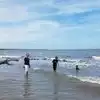 We went at sunset. Free limited parking on the side of the road at different points and well kept walkways through the palm fronds & trees all the way to the beach. There was only one other family there when we arrived. Visitors & locals are encouraged to use flashlights that are safe for the turtles. It was high tide and we were all wearing either water friendly close toed shoes or flip flops. Both stayed put as this is not a beach with aggressive waves. I’d definitely put closed toed shoes on the kids, especially if they are exploring through the branch areas. Also, with the tide being so high, there were many dips in the sand surface that you won’t see and could definitely be caught off guard (& fall). If you go at night, make sure you mark ( remember) which trail you came in on so that it’s easy to make your way back to your car. We didn’t do that and walked up too far and had to walk back further to our car. Good thing this island has wide bike trails everywhere so we felt safe walking beside the roadway at night. Our dog loves water and had a great time at high tide too! Keep a lookout for the lighthouse across the way and you also may see some professional fishing boats with lights!