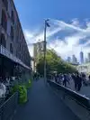 Really nice area with views of the skyline and many restaurants and free events in the evenings with really good local bands playing a variety of music. A great place to wind down from the bustle of the city. The only downside is the noise from the subway trains as they travel across the bridge.