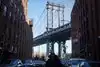 As a result, people are lining up the street to get a background of Manhattan Bridge but then cars are occasionally honking to the posing tourists.