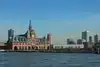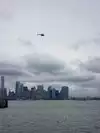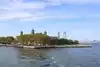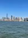 The boat to the island catches amazing views of Manhatten.