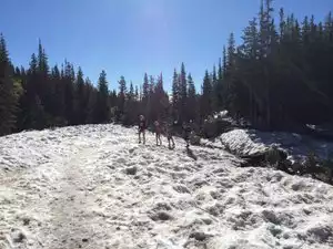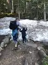 This is an incredibly beautiful hike, but on Father's Day weekend it was unpleasantly crowded and the slippery sections of snow were very difficult to navigate.
