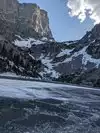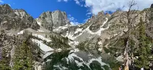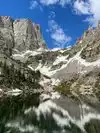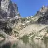 This hike passes two lakes on the way to Emerald Lake, along with several other beautiful views. We parked at the Bear Lake parking area at 7:15am as the lot was filling up. We took snacks and sat next to the lake at the top and watched climbers and the mountain snows melting.